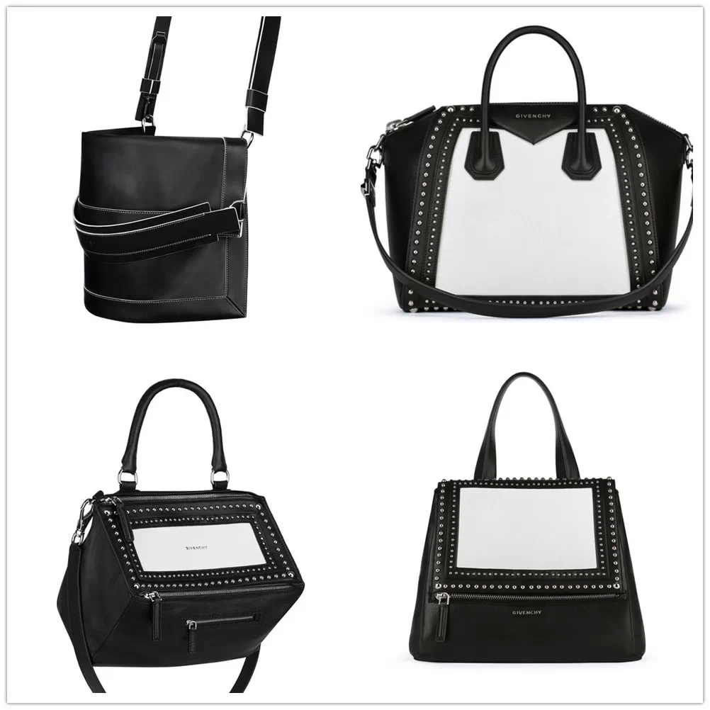 黑白拼接設(shè)計以及印花成了Givenchy這一季的主打,在包包的款式上并沒有多大的變化。印花本是很柔情浪漫的元素,但用在Givenchy包包上,有種剛?cè)岵拿馈?/span>